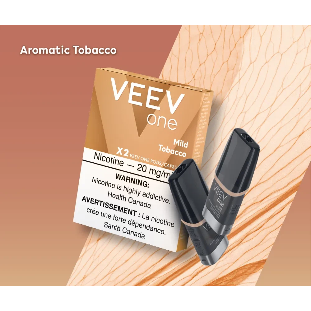 Mild Tobacco by VEEV One Pod consists of vape pods that deliver a flavor profile centered around tobacco. The product is packaged in two pods, each containing 2mL of liquid. It is intended for use by adult individuals.