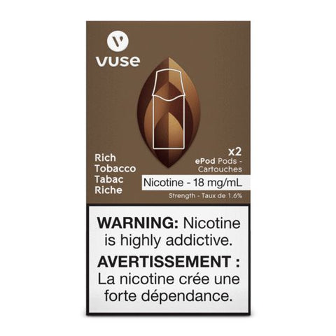 Rich Mix by VUSE ePod consists of vape pods that provide a tobacco flavor. The product includes two pods, each containing 2 mL of liquid, and is intended for use by adult users.
